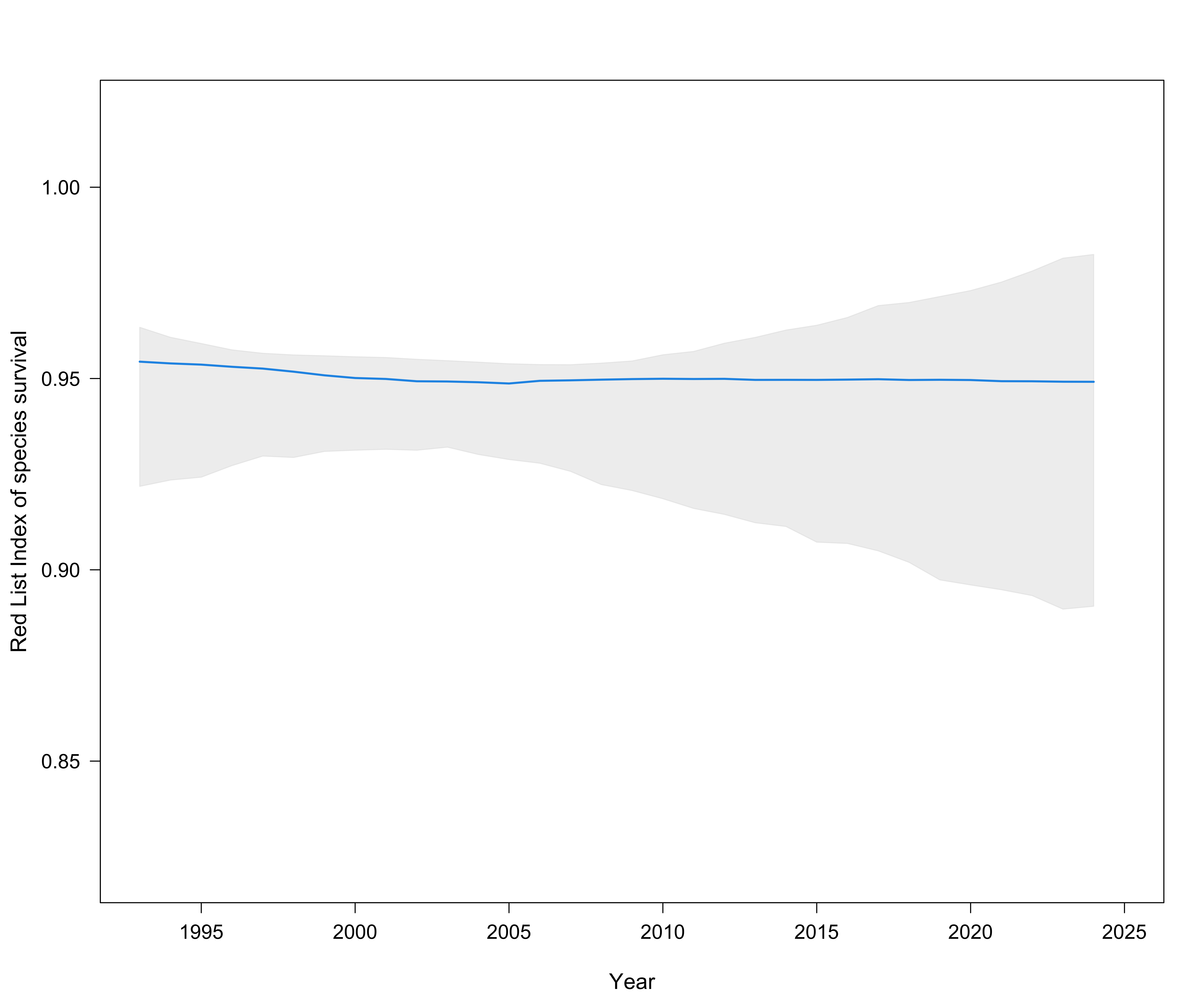 Figure 1. Red List Index of species survival for this country, weighted by the fraction of each species’ distribution occurring within the country.